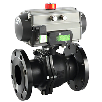 • Q641F气动衬氟球阀 Q641F气动衬氟球阀主要用于截断或接通管路中的介质,亦可用用于流体的调节与控制,它与其它阀类相比,具有以下一些优点。